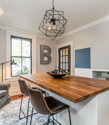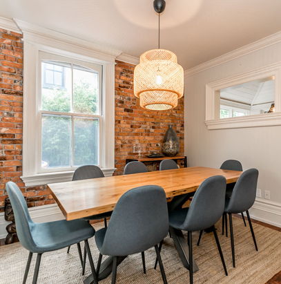 A large format centre staircase welcomes its residents upward to a careful night's slumber. Four suites of slumber outfit the upper level.