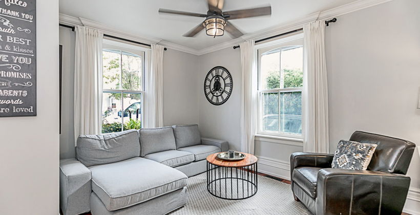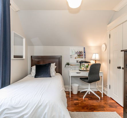 A spacious primary suite affords the perfect night's rest. The bedroom is flanked in hardwood, beadboard and finished with a custom closet.